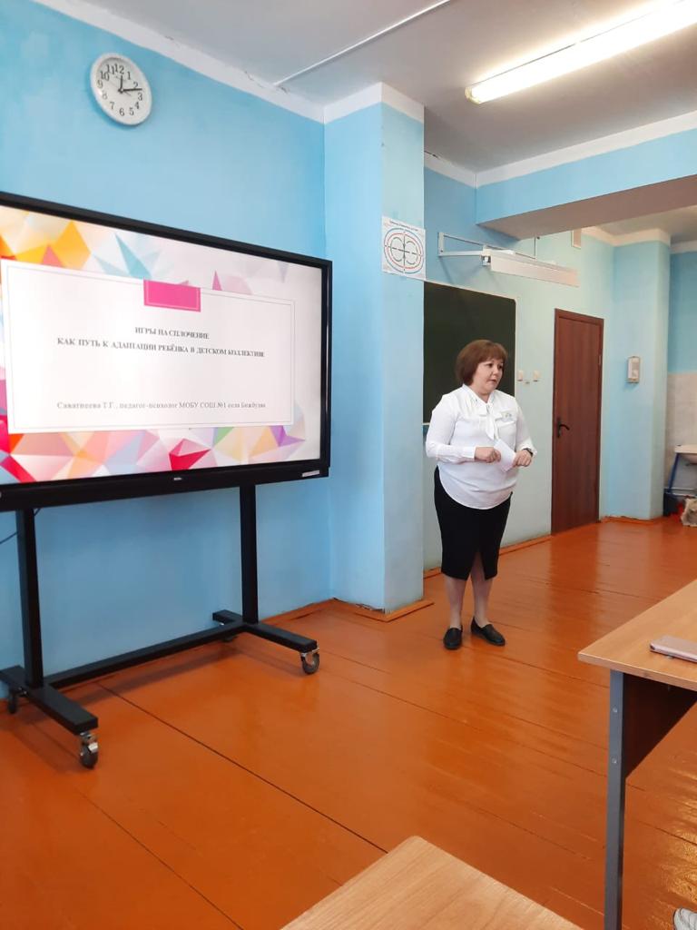 Саватнеева Т.Г., педагог-психолог МОБУ СОШ №1 с. Бижбуляк провела мастер-класс «Игры на сплочение как путь к адаптации ребёнка в детском коллективе».